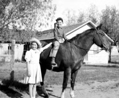 A daughter, Twila Mae, was born September 15, 1927 at home. Gerald gave the potato harvest crew a day off on September 16. Quite unheard of then. Gerald always had milk cows, sheep and pigs. Chores took lots of time before he could go to the field whatever time of year. He also had beautiful horses and mules. They were work animals.